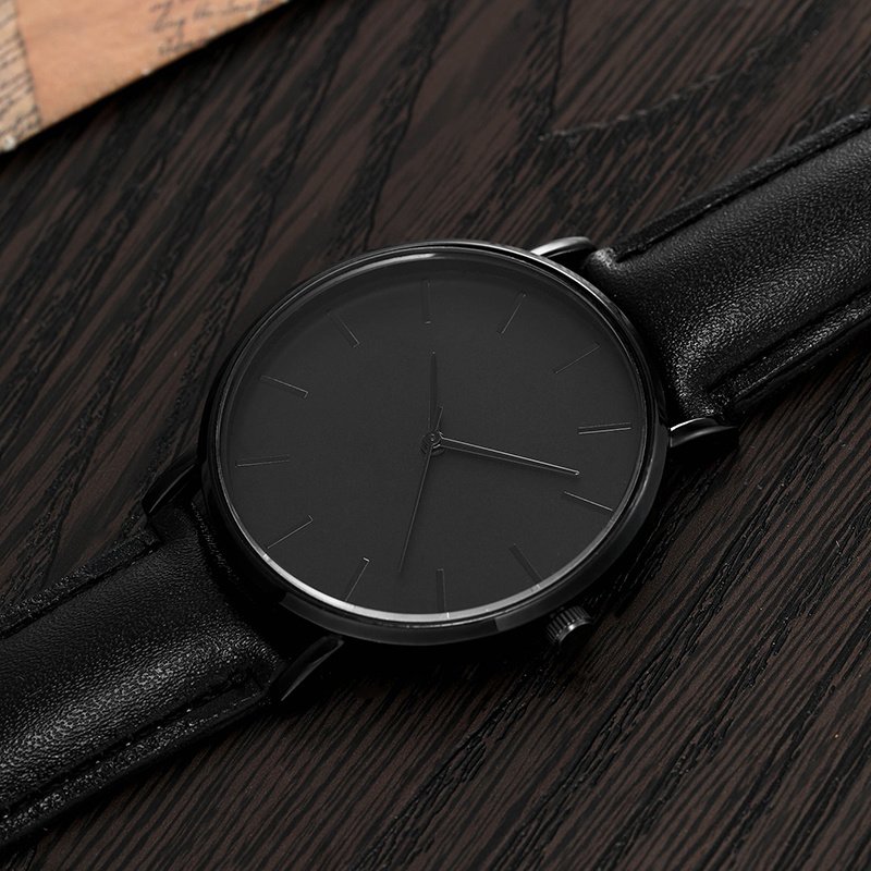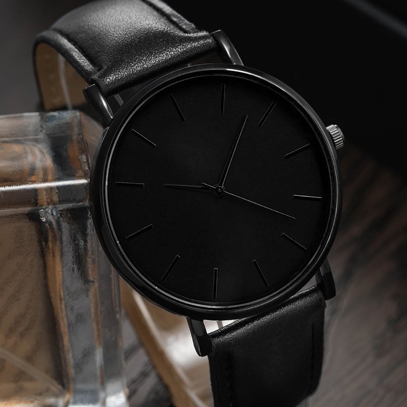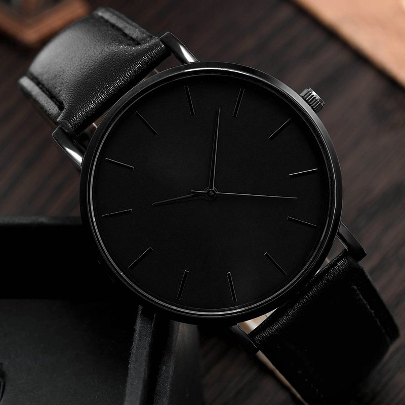 Home > 1pc Hot Selling Men's Leather Circular Pointer Watch Business Leisure Quartz Watches - Black